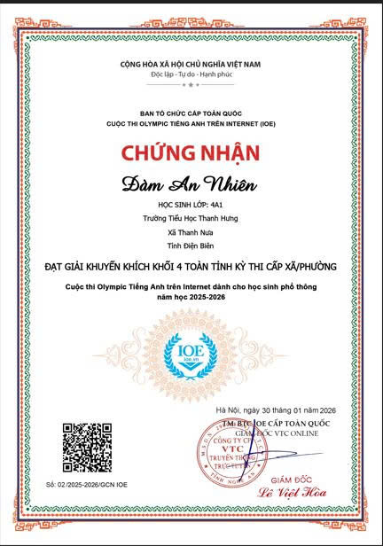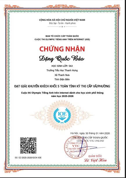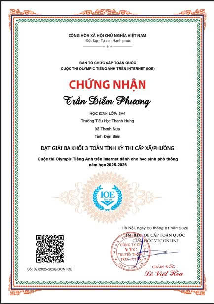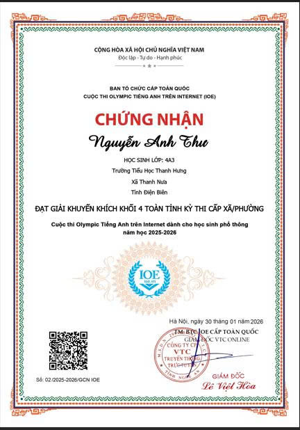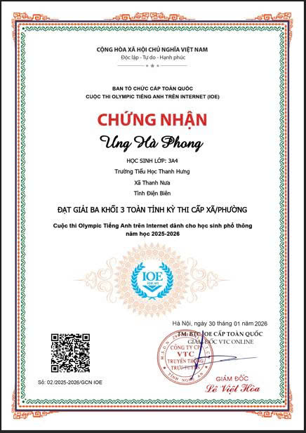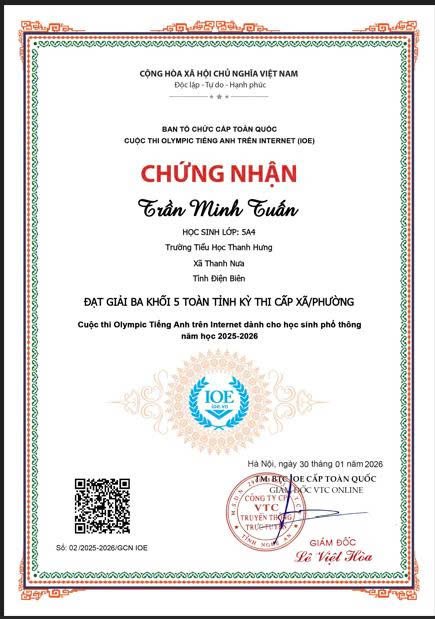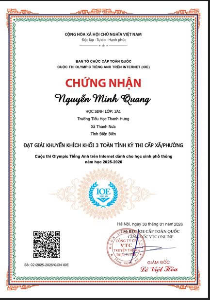 Giấy chứng nhận học sinh đạt giải trong kỳ thi Olympic Tiếng Anh cấp xã