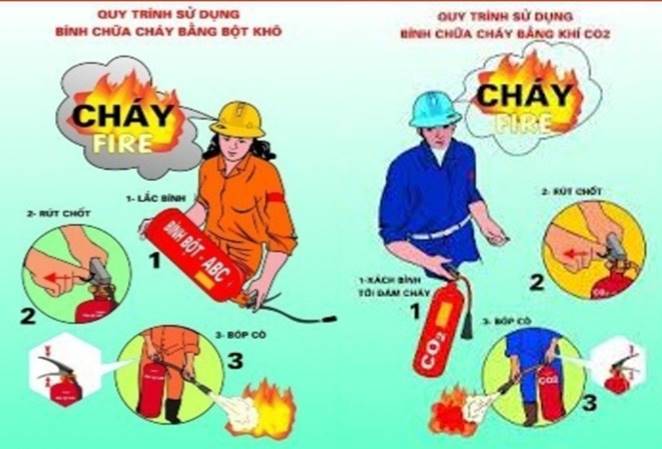 3. Cách sử dụng bình chữa cháy dạng bột khô và dạng khí C02