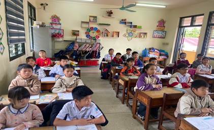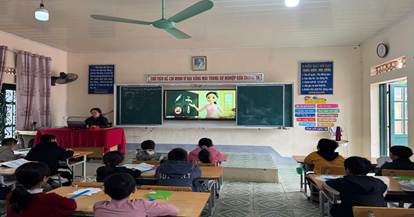 HS trường Tiểu học Thanh Hưng nghe thầy cô tuyên truyền về ma túy
